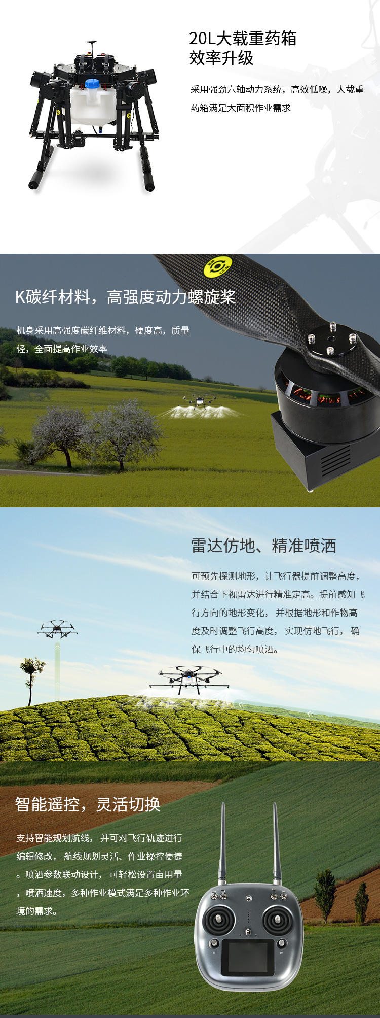 機身采用高強度碳纖維材料,硬度高,質量輕,全面提高作業效率